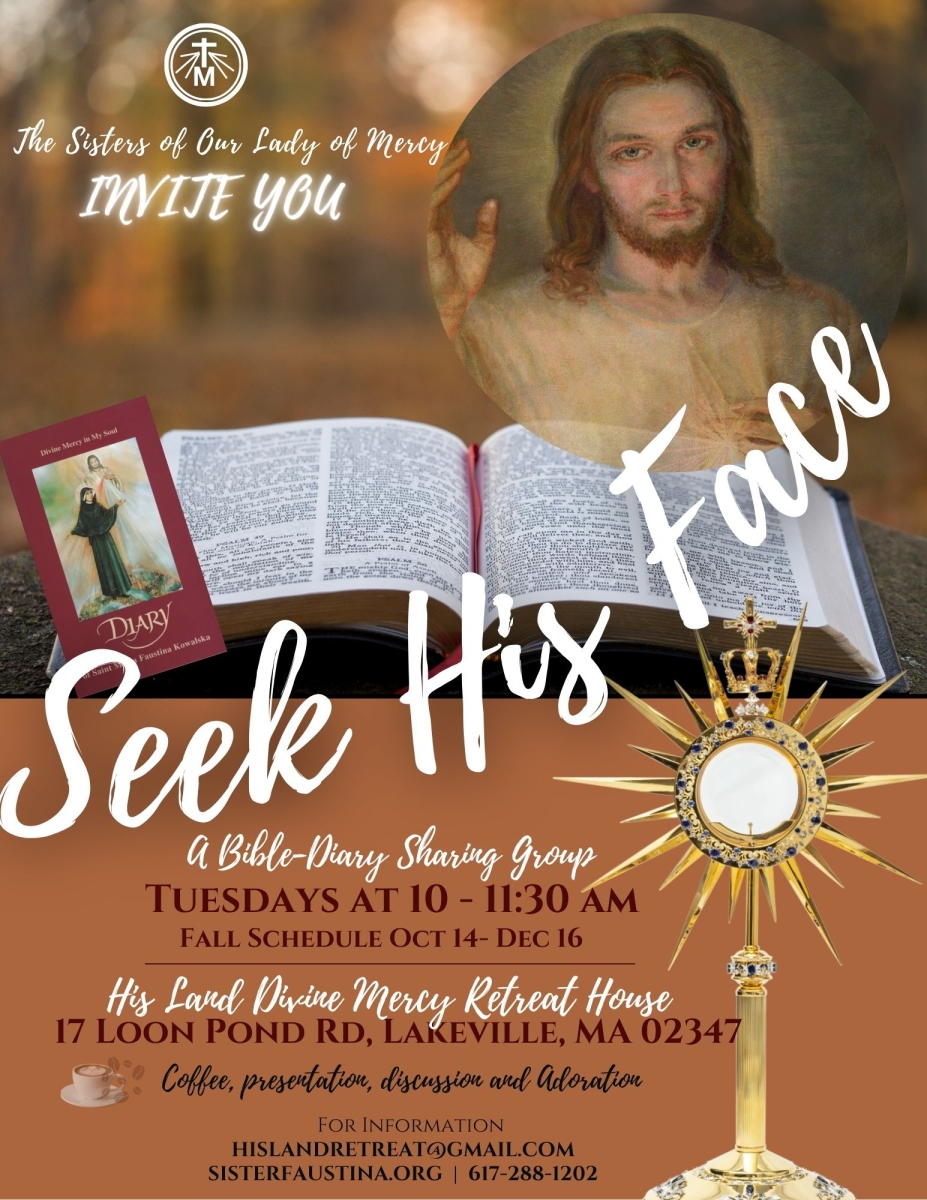 Is life too hard at times? Does your heart cry out, "Time out!" Do you wonder, "Is there Someone who actually understands?" Through Eucharistic Adoration, Scripture and St Faustina's Diary, Know Jesus more deeply as your Truest Friend who loves you and is with you. Come, let us seek His Face together!