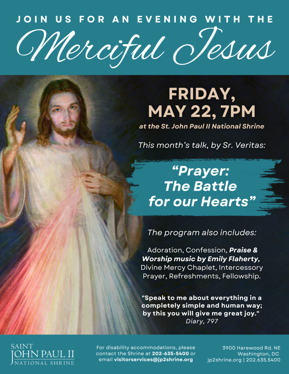 Have you ever thought of prayer as being a battle for your heart? “Prayer is the encounter of God’s thirst with ours. God thirsts that we may thirst for Him.” (CCC 2560) In His mercy, God desires our hearts and yet as we so often experience in prayer, other influences vie for our attention. In her Diary, St. Faustina teaches us how prayer draws us deeper into the mystery of God’s mercy and how the Holy Spirit comes to our aid to offer our hearts to the Father who thirsts for us.